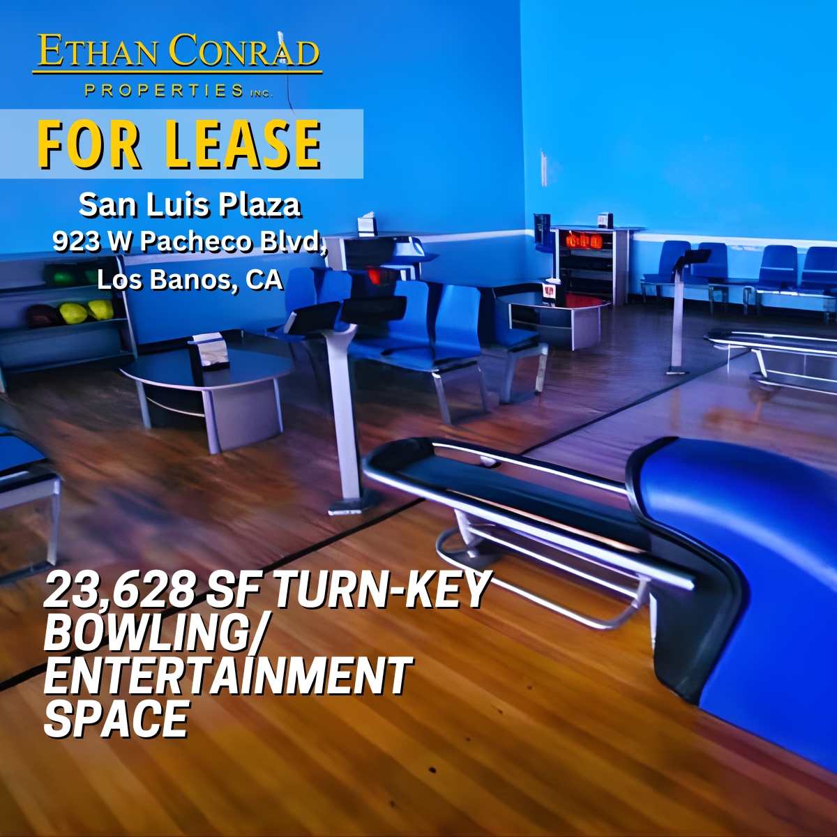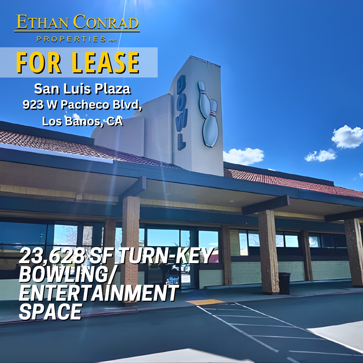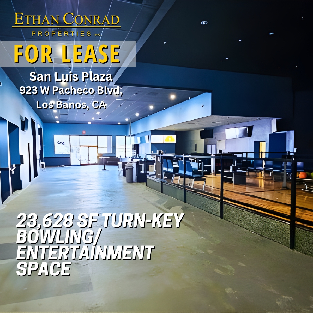 An exceptional 23,628 square foot turn-key bowling and entertainment space is now available for lease at San Luis Plaza, offering operators a rare opportunity to open quickly with major infrastructure already in place.